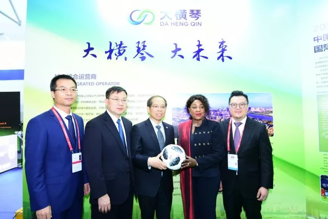 (圖:中國足協(xié)常務(wù)副主席兼秘書長(zhǎng)張劍(中),國際足聯(lián)秘書長(zhǎng)法瑪特(右2),市委常委郭才武(左2)親臨大橫琴展臺(tái)視察指導(dǎo)。)