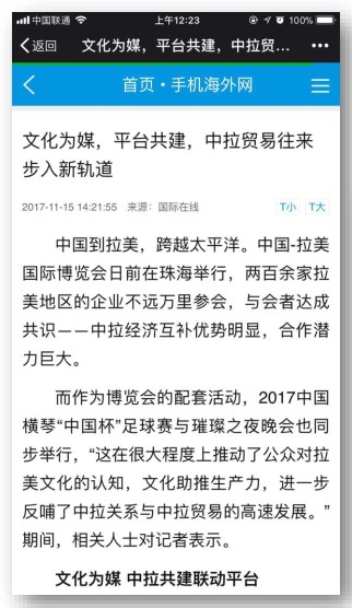 而作為博覽會的配套活動,2017中國橫琴“中國杯”足球賽與璀璨之夜晚會也同步舉行,“這在很大程度上推動了公眾對拉美文化的認知,文化助推生產力,進一步反哺了中拉關系與中拉貿易的高速發(fā)展?!?期間,相關人士對記者表示。