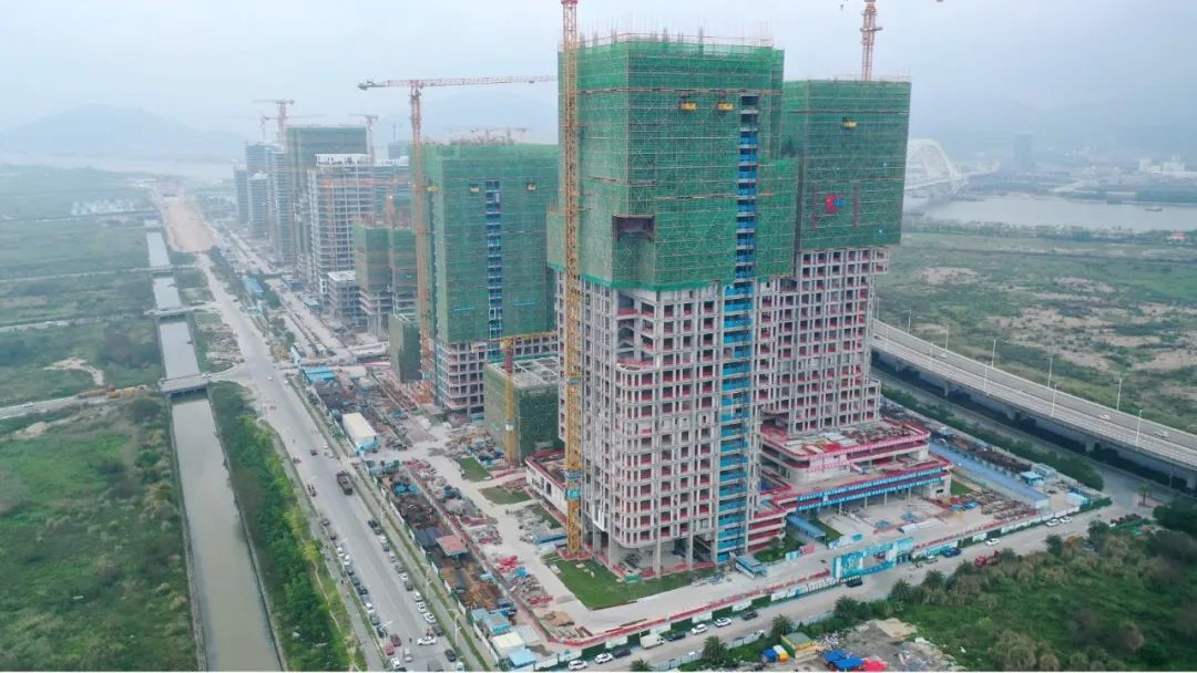 2023年4月25日,由大橫琴置業(yè)有限公司投資建設的橫琴科學城(二期)標段二項目迎來首棟SA4號樓138.8米超高層結構封頂,同時也是橫琴科學城產(chǎn)業(yè)園首棟超高層封頂,項目至今已累計完成6棟結構封頂,接下來將進入全力沖刺剩余3棟SA1、SA2、SA3號樓超高層(其中最高棟SA3號樓為180米)結構全面封頂階段。