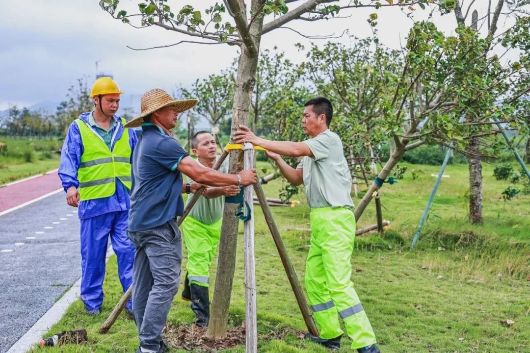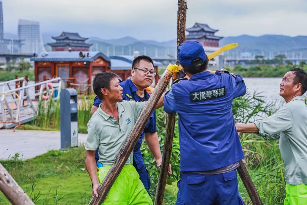 琴建公司管理人員全員上崗,對(duì)所管養(yǎng)的花海長(zhǎng)廊、芒洲濕地公園、二井灣濕地公園、天沐河公園、各城市驛站、小橫琴山步道、水庫(kù)、沙灘等項(xiàng)目及在建工地進(jìn)行防臺(tái)風(fēng)工作。