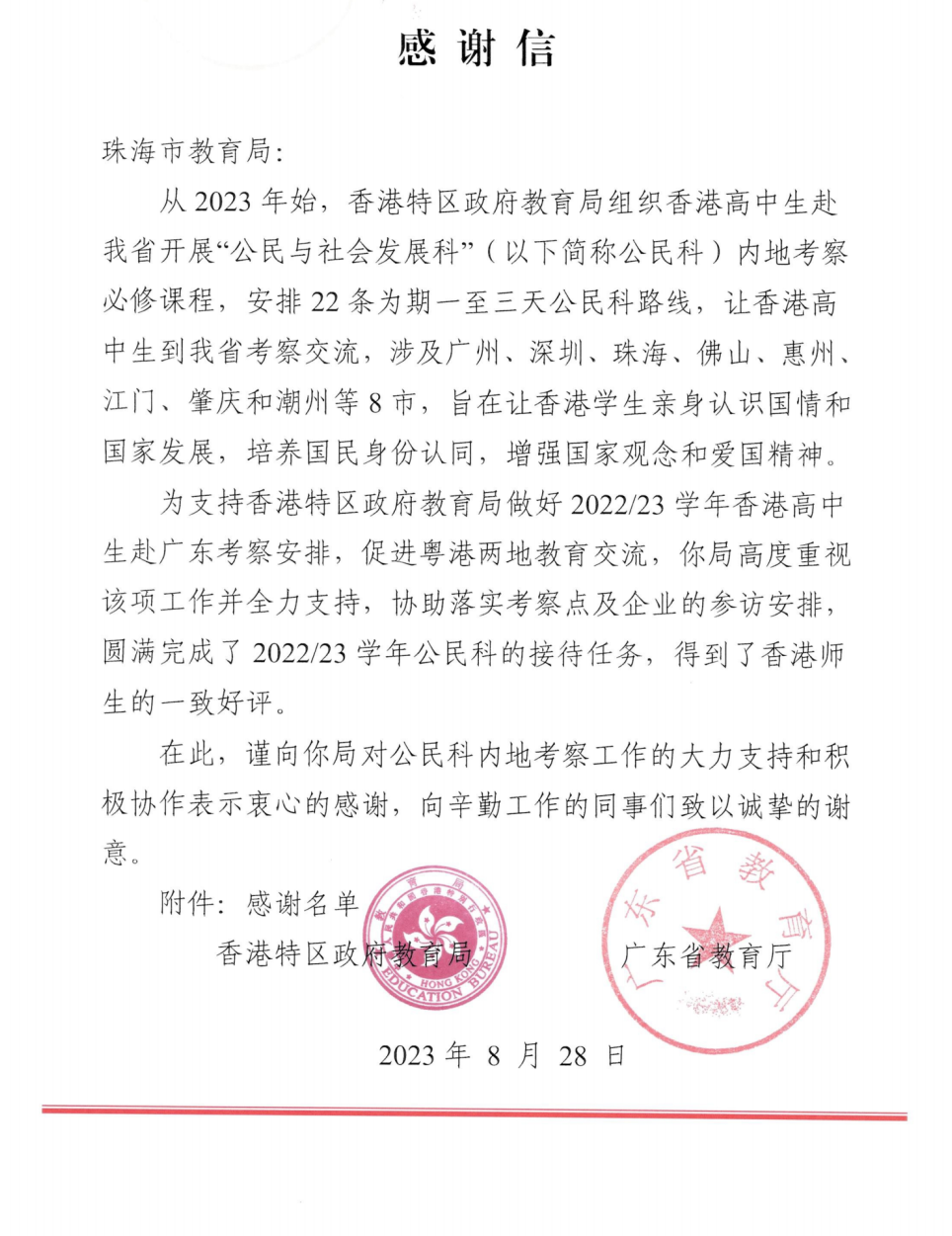 助力粵港教育交流,支持兩地智趣研學(xué)。香港特區(qū)政府教育局組織香港高中生赴我省開展“公民與社會(huì)發(fā)展科”內(nèi)地考察必修課程,大橫琴管廊積極配合相關(guān)工作的開展,為香港高中生細(xì)致介紹橫琴綜合管廊這一保障城市運(yùn)行的“地下生命線”,獲“香港特區(qū)政府教育局、廣東省教育廳”致信感謝,被認(rèn)定為“工作特別突出單位”。