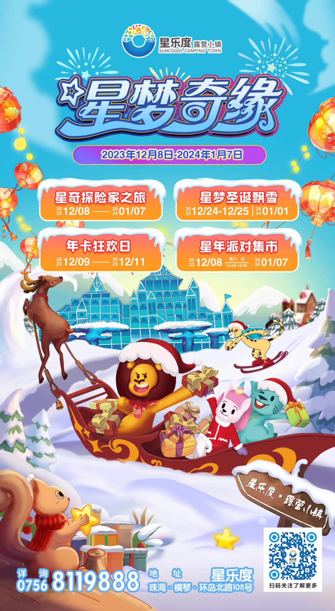 作為橫琴乃至大灣區(qū)知名休閑旅游度假目的地,由珠海大橫琴星樂度文旅發(fā)展有限公司(以下簡(jiǎn)稱大橫琴星文旅公司)運(yùn)營(yíng)的橫琴星樂度·露營(yíng)小鎮(zhèn)推出了“星夢(mèng)奇緣”主題迎春活動(dòng),元旦假日期間將推出夢(mèng)幻飄雪、歡樂小丑、跨年LIVE、跨年演藝等豐富環(huán)節(jié)。