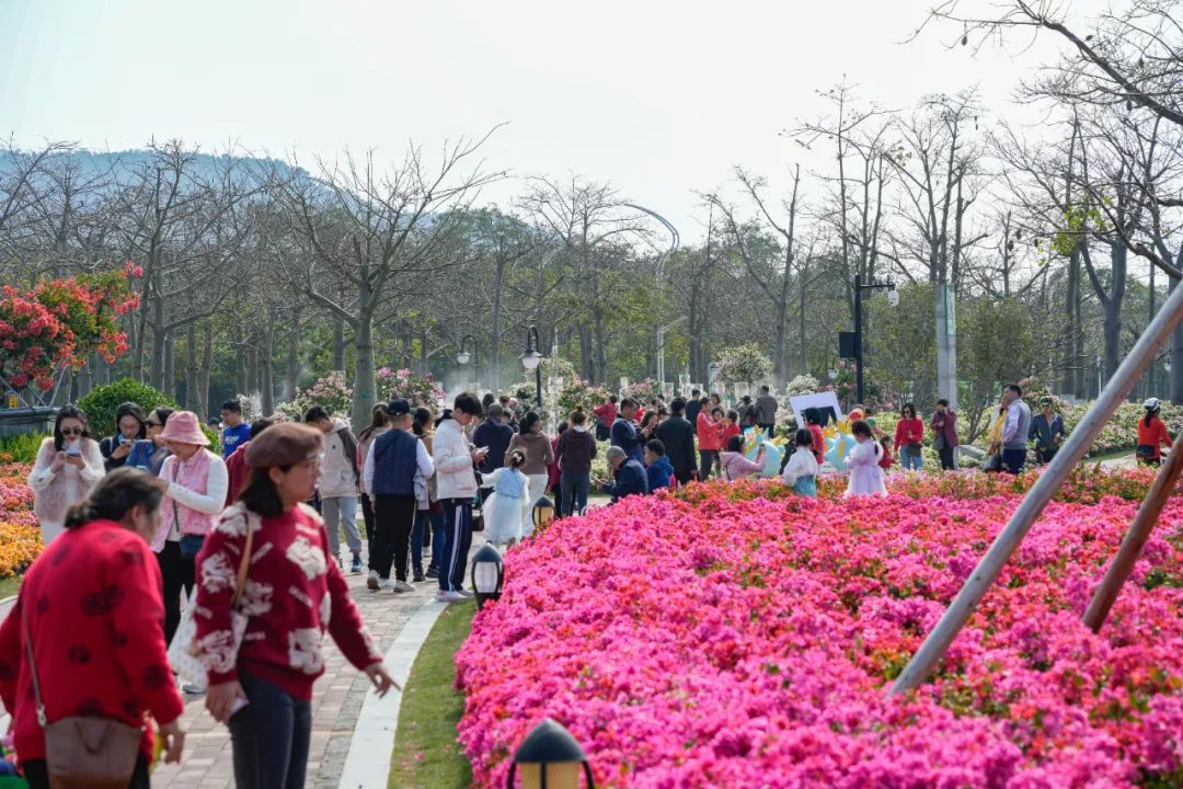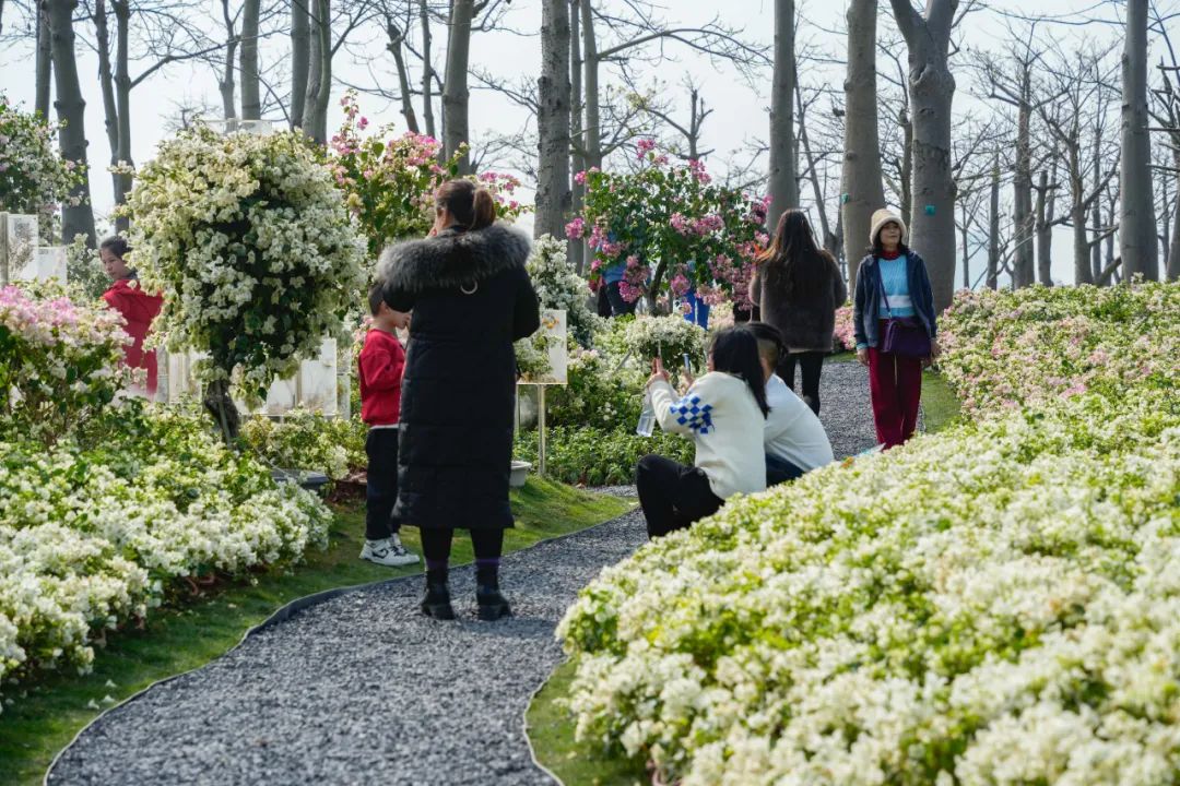其中,花海長(zhǎng)廊的簕杜鵑園成為熱門打卡地,色彩斑斕的花朵絢爛盛放,設(shè)計(jì)師將靈感奇思揉進(jìn)景觀空間四個(gè)分區(qū),占地總面積達(dá)5000平方米,打造冰天雪地-粉妝玉砌-紅妝素裹-前橙似錦四大板塊的簕杜鵑專類展園,引來大量游客前來拍照打卡。