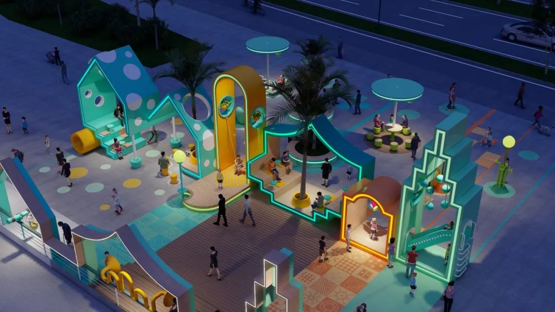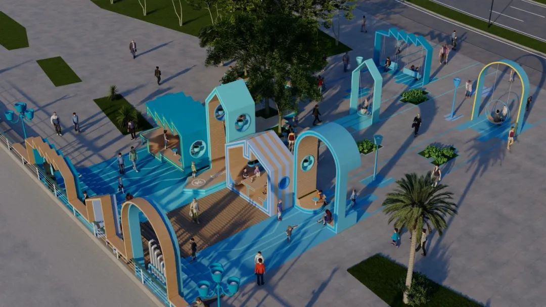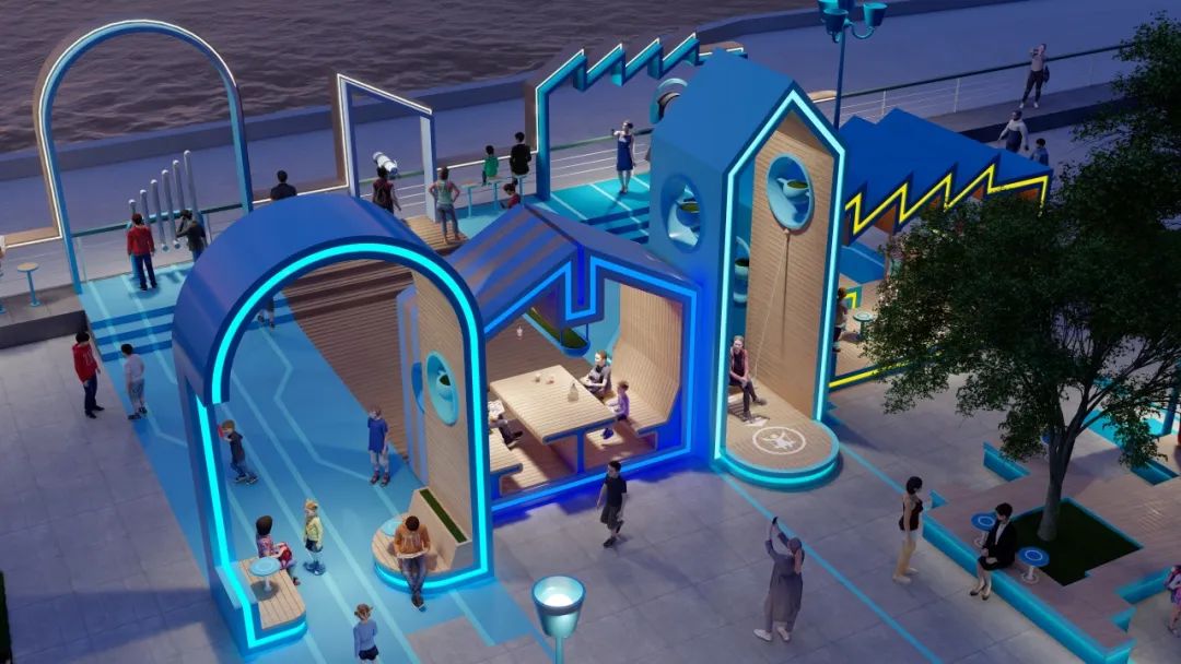 在一個個形態(tài)各異的“城市小屋”串聯(lián)下,分別以綠色、藍色為主色調(diào)的城市客廳已基本成型。