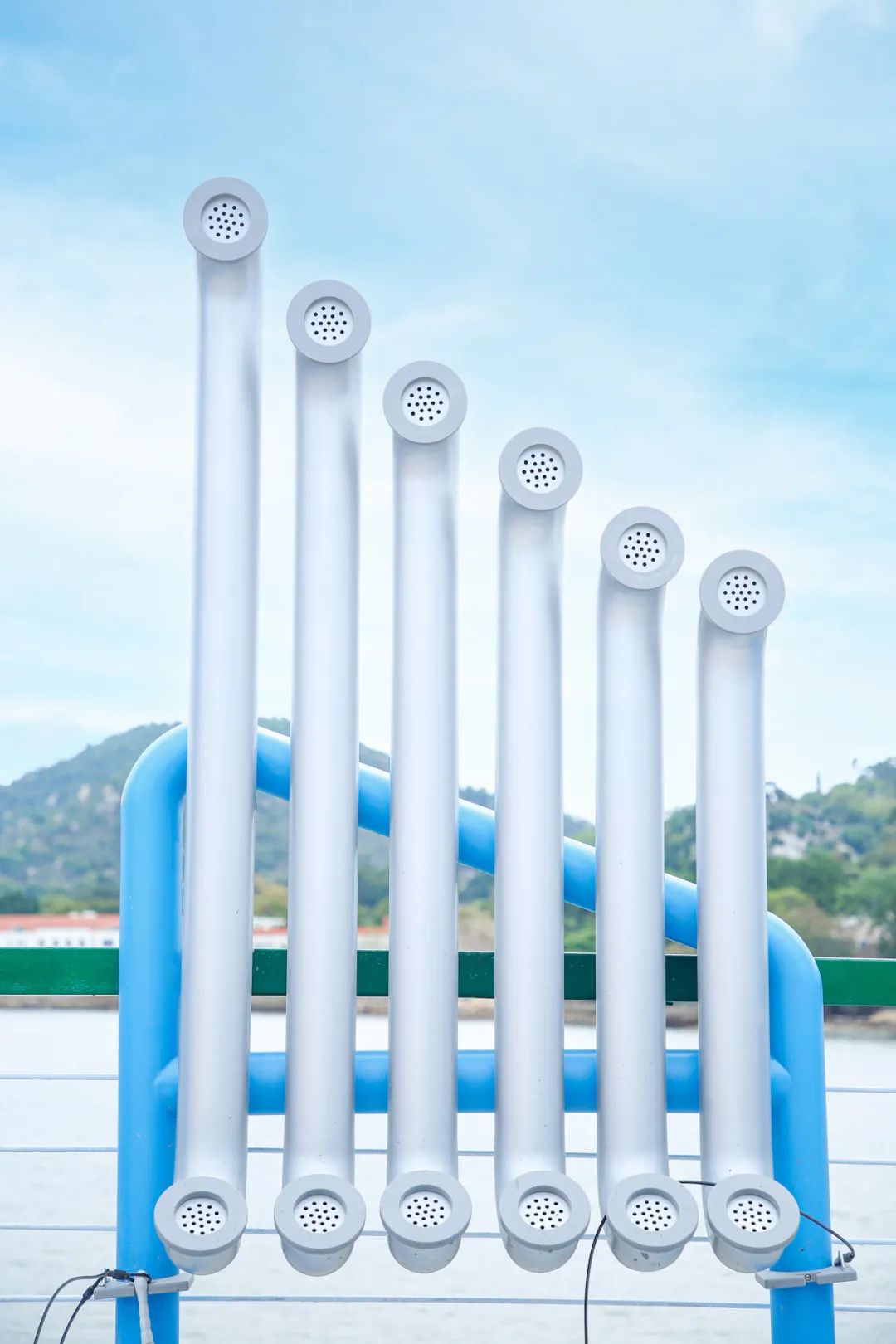 城市家具的設計風格,充分融合了粵澳文化和橫琴碼頭地域特色與周邊環(huán)境和諧相融,高顏值的城市家具旁,便是如畫的風光,放眼望去,充滿“藝術(shù)范”的城市家具與碧海藍天交相輝映,令人心曠神怡。