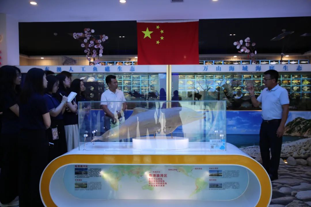 萬山海洋生物科普館是珠海市首個離島海洋生物科普館。這里不僅有豐富的生態(tài)魚缸和珍貴的中華白海豚標(biāo)本,還通過實景化展示,如人工魚礁和海底生態(tài)缸,生動呈現(xiàn)萬山群島海域的生物多樣性。揭牌儀式后,萬山海洋生物科普館館長安東為講解員志愿者們提供培訓(xùn),從科普館整體概況、海洋生物種類、保護(hù)海洋生態(tài)的意義等方面,幫助志愿者拓展海洋知識,進(jìn)一步提升志愿服務(wù)能力。