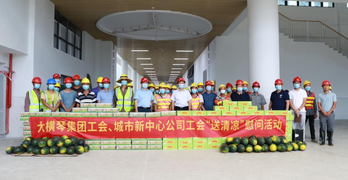 2021年7月,大橫琴集團黨委書記、工會主席田偉帶隊分別赴科學(xué)城(二期)標(biāo)段一、標(biāo)段二項目、橫琴醫(yī)院項目、橫琴新區(qū)子期幼兒園和小學(xué)及保稅一小工程項目開展夏日送清涼慰問活動。